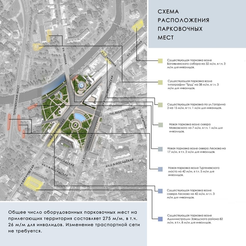 Парковочные места предложено расположить у Ленинского моста, на набережной.