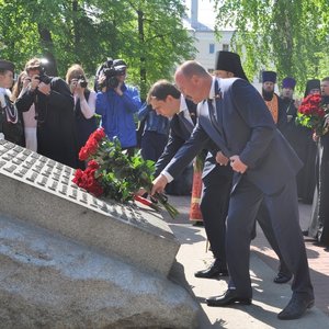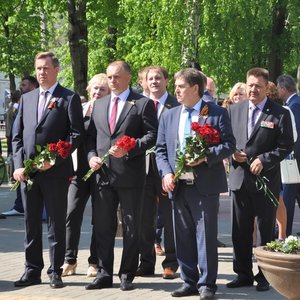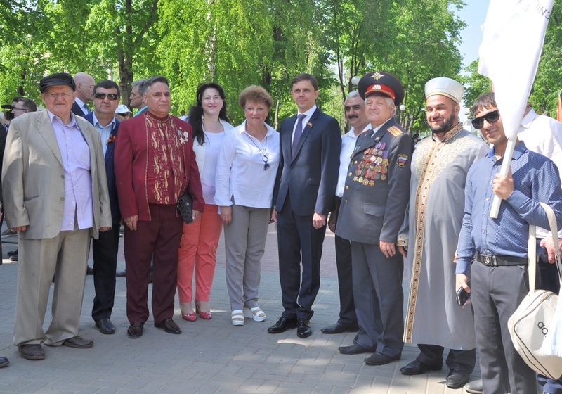 После митинга состоялась церемония возложения цветов к памятнику Героям-танкистам, братской могиле и памятнику И.Х. Баргамяну.