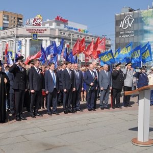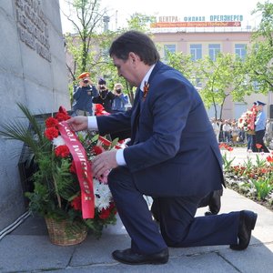 Сегодня, накануне празднования Дня Победы, в сквере Танкистов состоялся митинг.