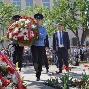 По традиции в честь подвига советских воинов над зданием дома № 5 на площади Мира был водружен дубликат Красного флага Победы, который 5 августа 1943 года подняли над городом Орлом воины-разведчики Василий Образцов и Иван Санько.