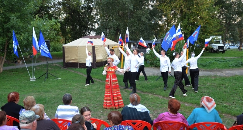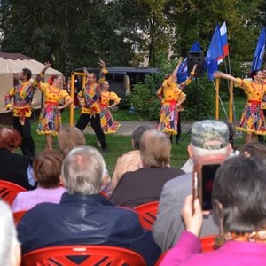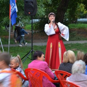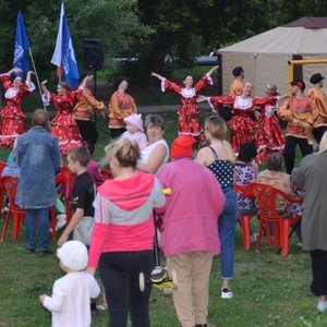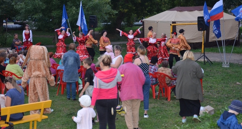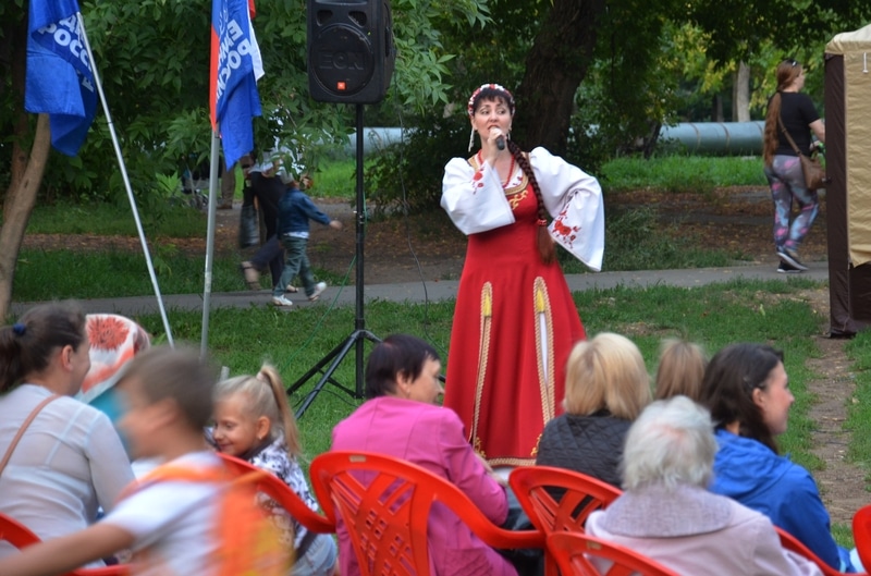На импровизированной сцене проходил концерт, подготовленный ансамблем «Славица». До позднего вечера горожане вместе с солистами ансамбля пели и танцевали.
