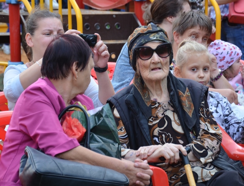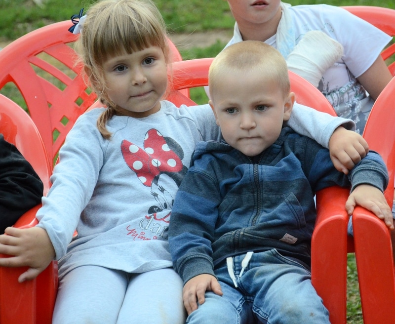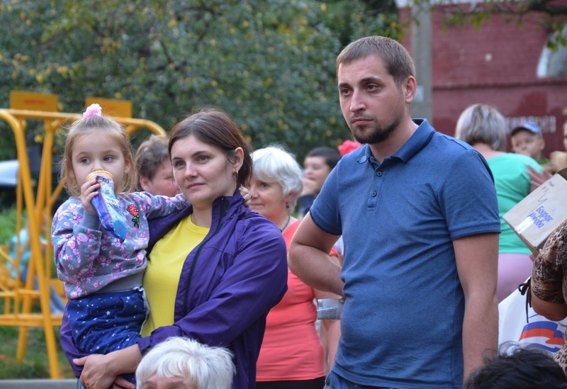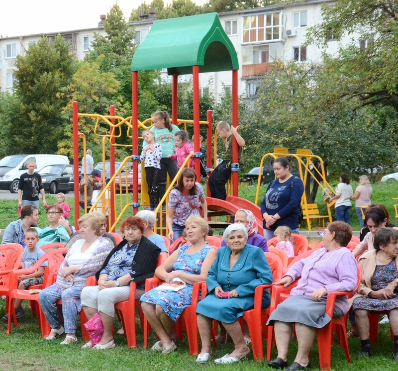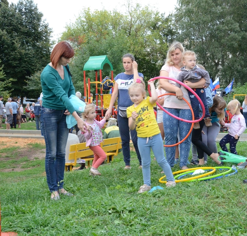 Он собрал ребятишек дошкольного, школьного возраста и их родителей из этих домов и расположенных по соседству.
