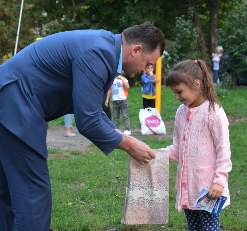 Первоклашкам Владимир Владимирович подарил канцелярские принадлежности и пожелал им хороших отметок, новых знаний и успешно провести учебный год. Старшим по домам, домкомам — парламентарий вручил благодарности.