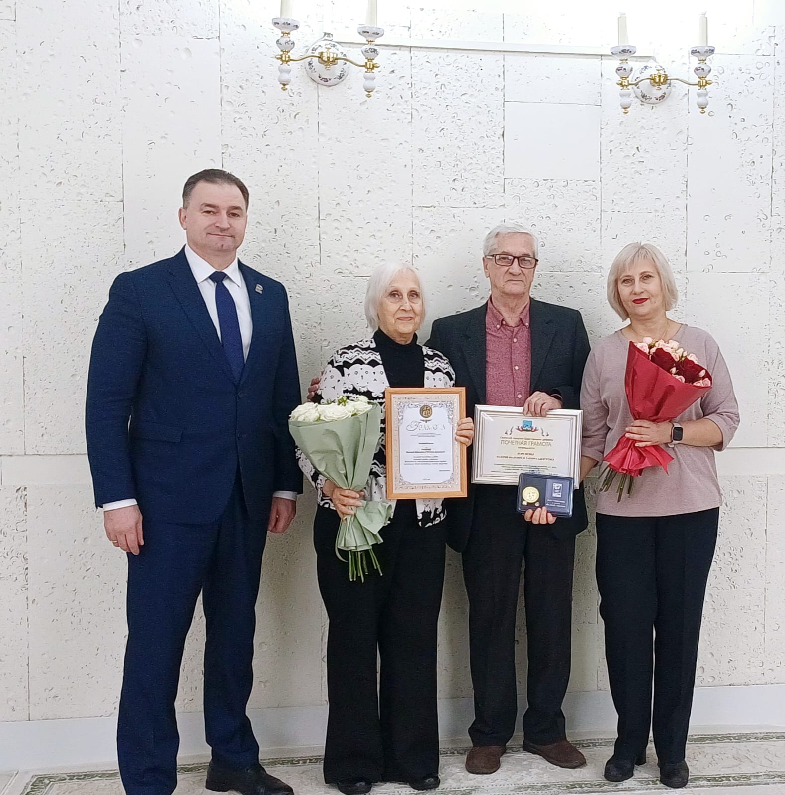 С этим знаменательным событием пару поздравил председатель городского Совета Владимир Негин, подчеркнув, что Коруновы – яркий пример для молодого поколения, образец крепкой семьи и верности.