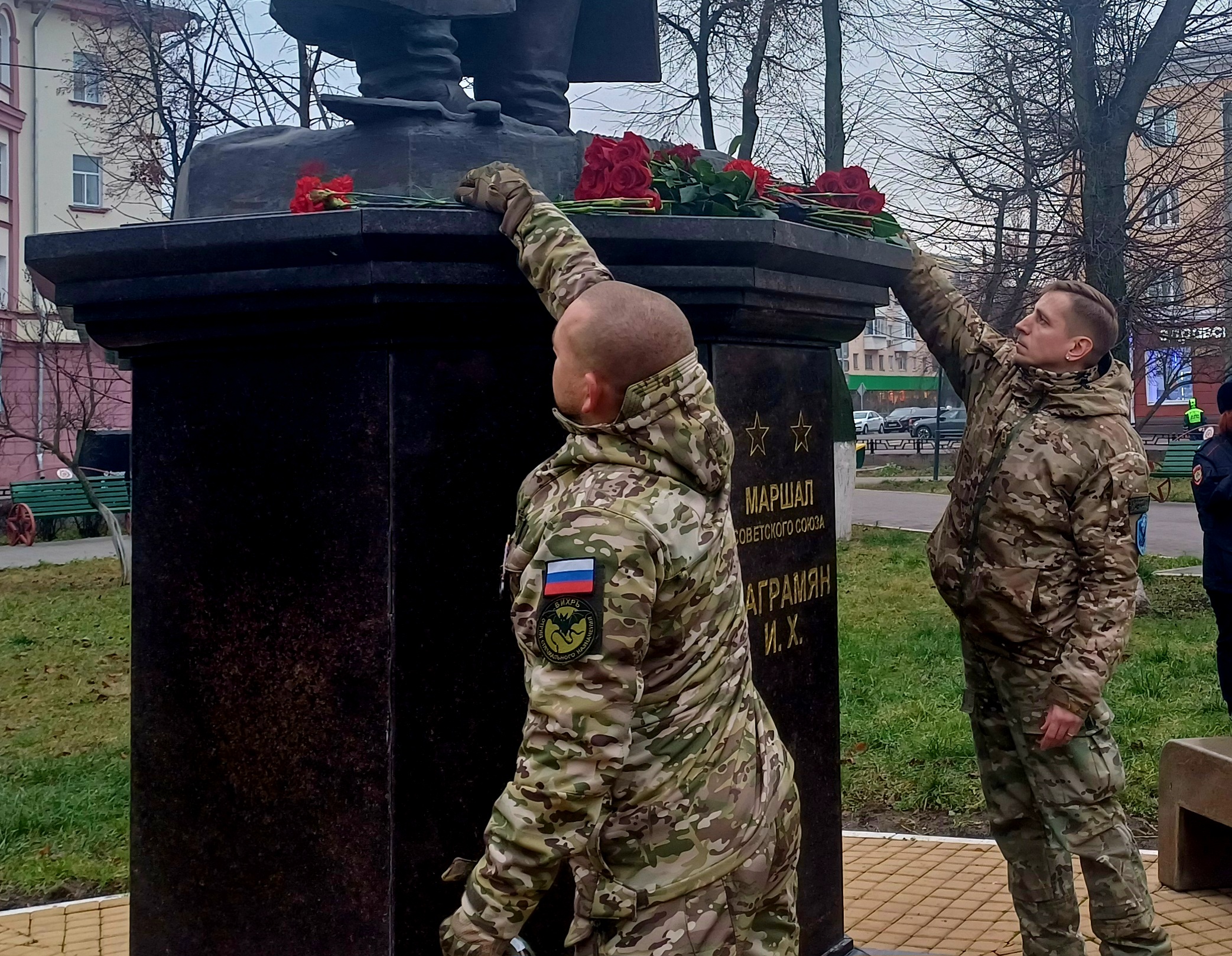 Присутствующие возложили цветы к памятнику Героям-танкистам, к братской могиле и к памятнику Маршалу Советского Союза И.Х. Баграмяну. Минутой молчания почтили память неизвестных солдат.